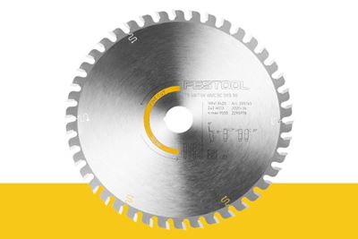 - Las hojas con un menor número de dientes son apropiadas para cortes de separación, por ejemplo, en bordes invisibles o en materiales gruesos como tableros OSB, donde la velocidad es más importante que un borde de corte sin desgarros.