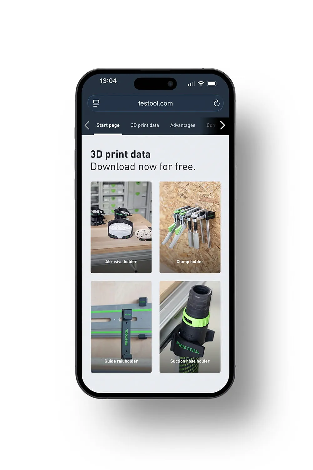 "Los datos de impresión 3D de Festool son realmente geniales. Simplemente descarga, imprime y diviértete".
