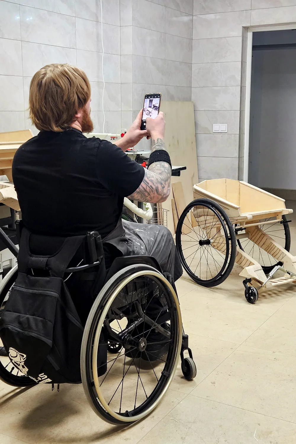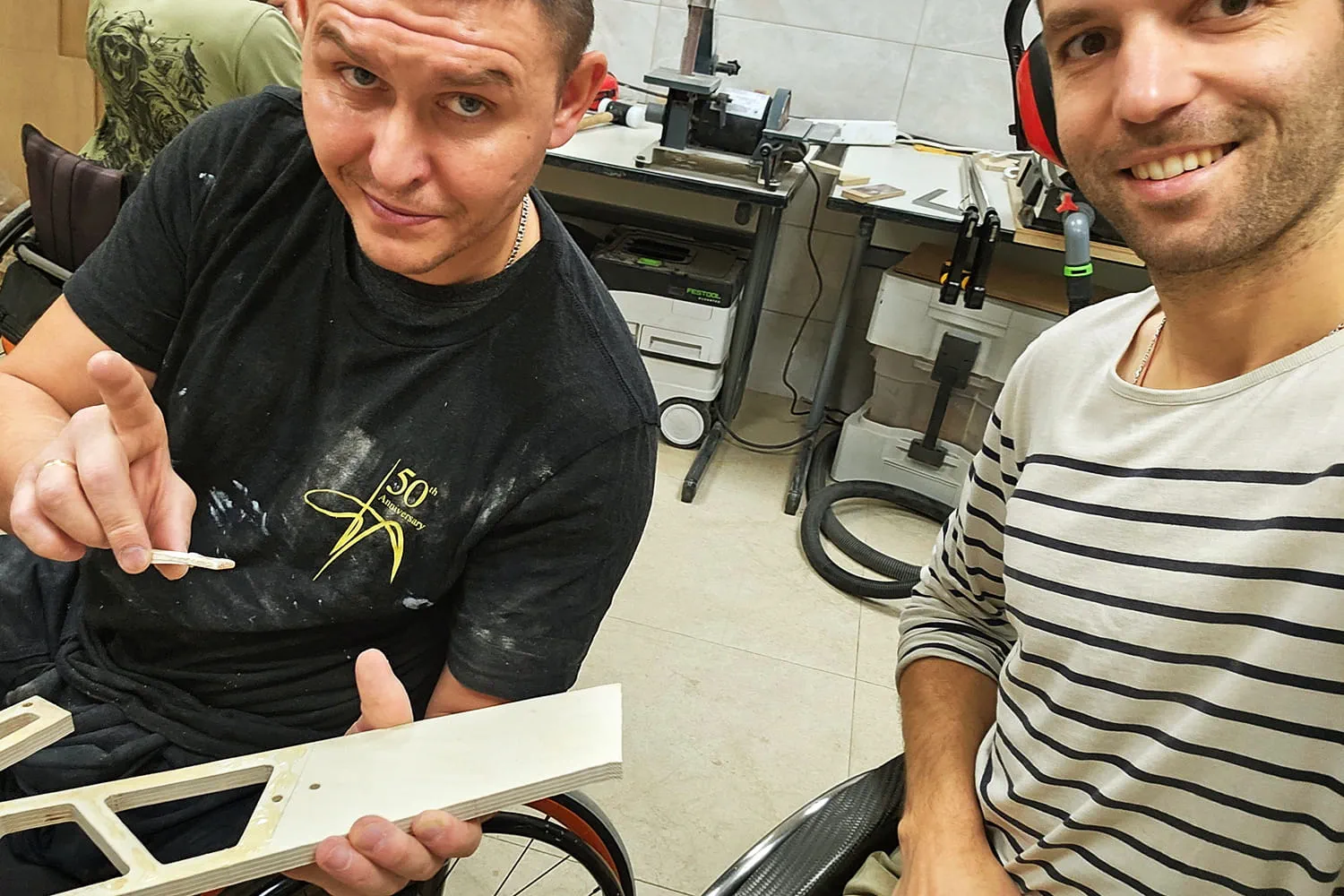 En el Centro Unbroken, el centro de rehabilitación puso a su disposición una pequeña sala en el sótano de un edificio, de unos 25 metros cuadrados, pero suficiente para montar un taller en funcionamiento. Paul trae de Francia el material necesario y acondiciona la sala para que los participantes puedan trabajar allí con seguridad y comodidad. Pronto comienza el primer pequeño programa: seis participantes se reúnen regularmente para trabajar juntos en sus propias sillas de ruedas. Durante casi cinco semanas, el grupo acude al taller cinco días a la semana durante unas tres horas cada vez.