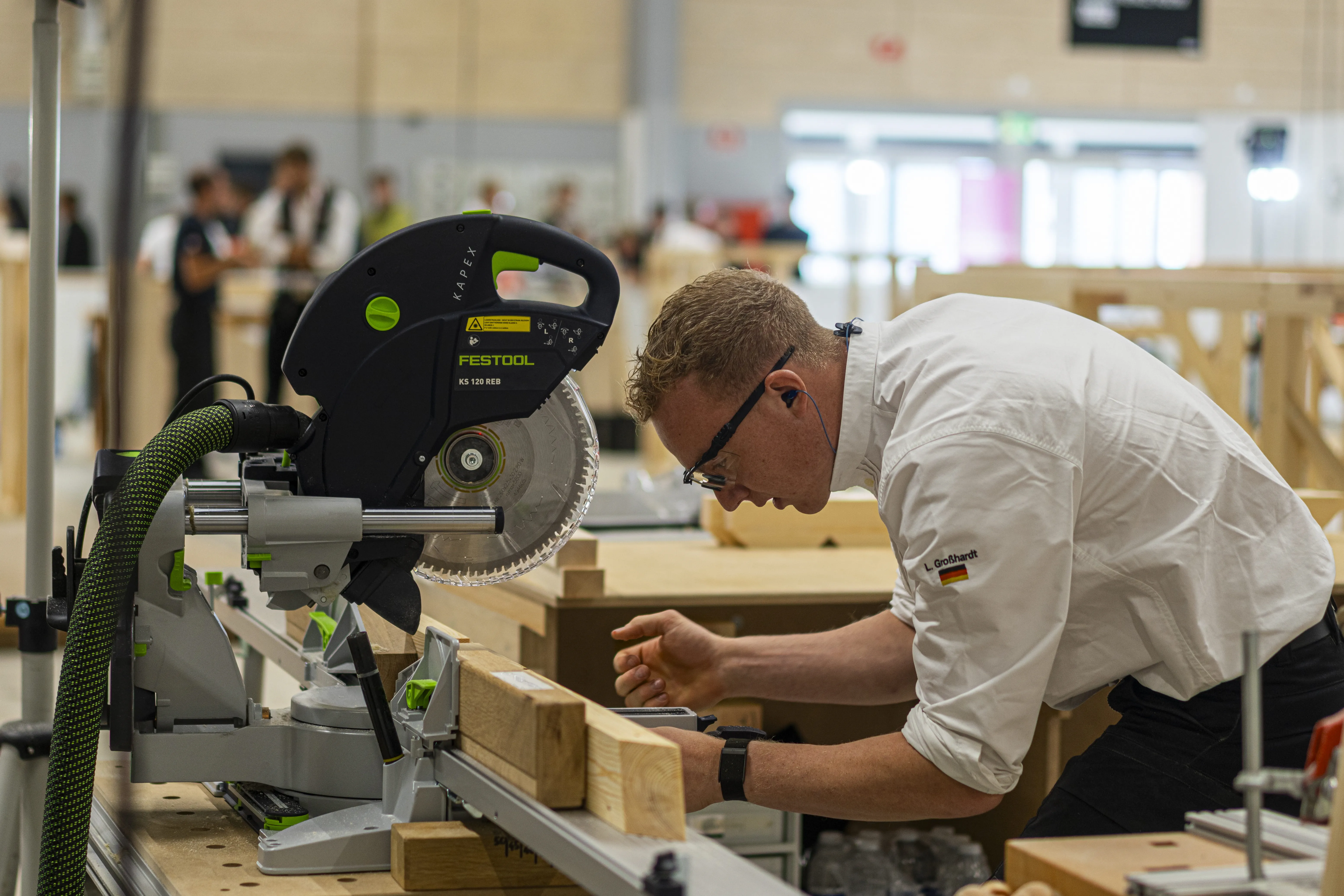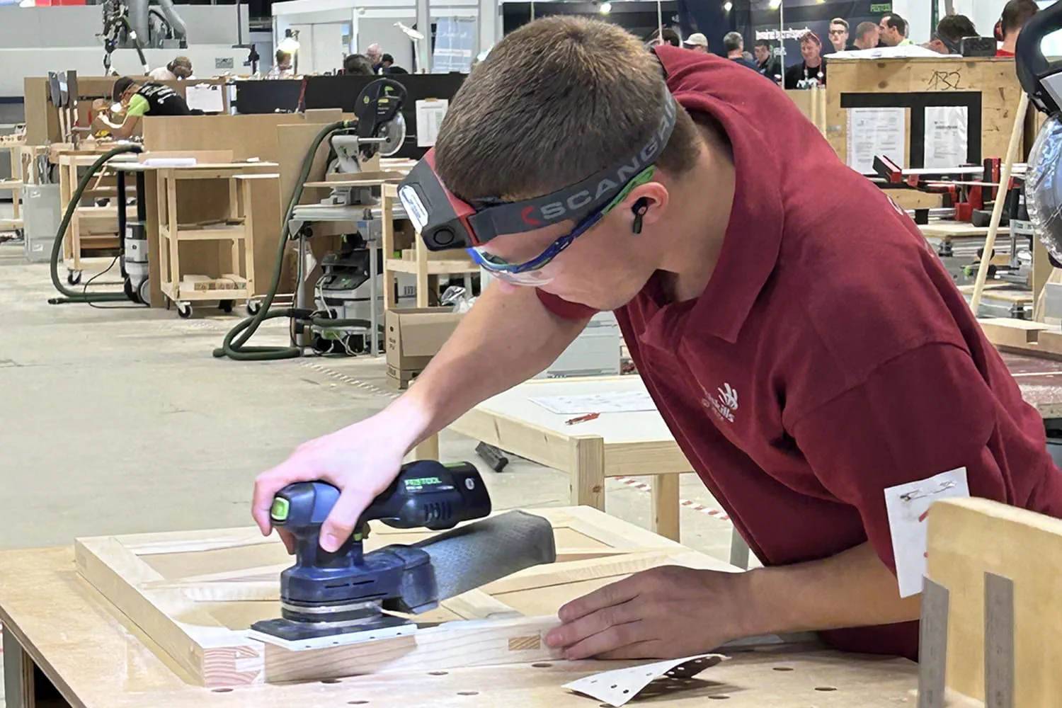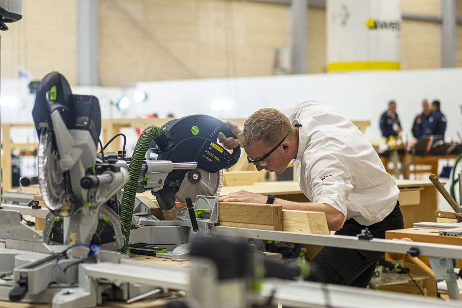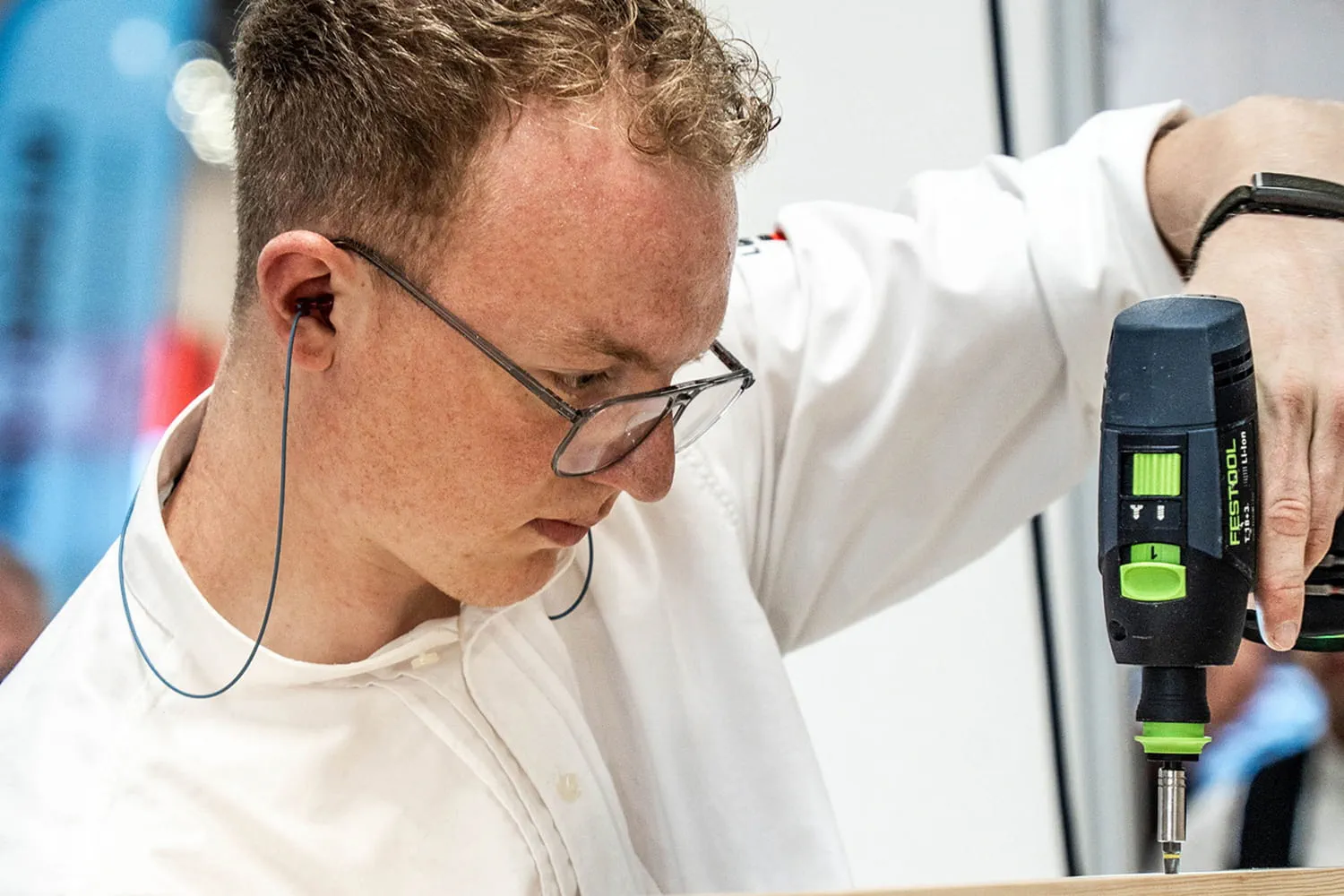 Cuando se abren las puertas de las salas de competición en Herning, Dinamarca, en EuroSkills, te sumerges inmediatamente en un mundo diferente: La adrenalina está en el aire, las caras de los competidores muestran la máxima concentración. Todo ello acompañado por el rítmico zumbido de las máquinas y el olor a madera y serrín. La artesanía y el talento se condensan en unos pocos metros, en los que los participantes trabajan con el sudor de su frente para completar proyectos muy exigentes en un tiempo determinado. Lo único que tienen a su lado son sus herramientas eléctricas. Ayudantes indispensables en el camino hacia el podio de los ganadores.