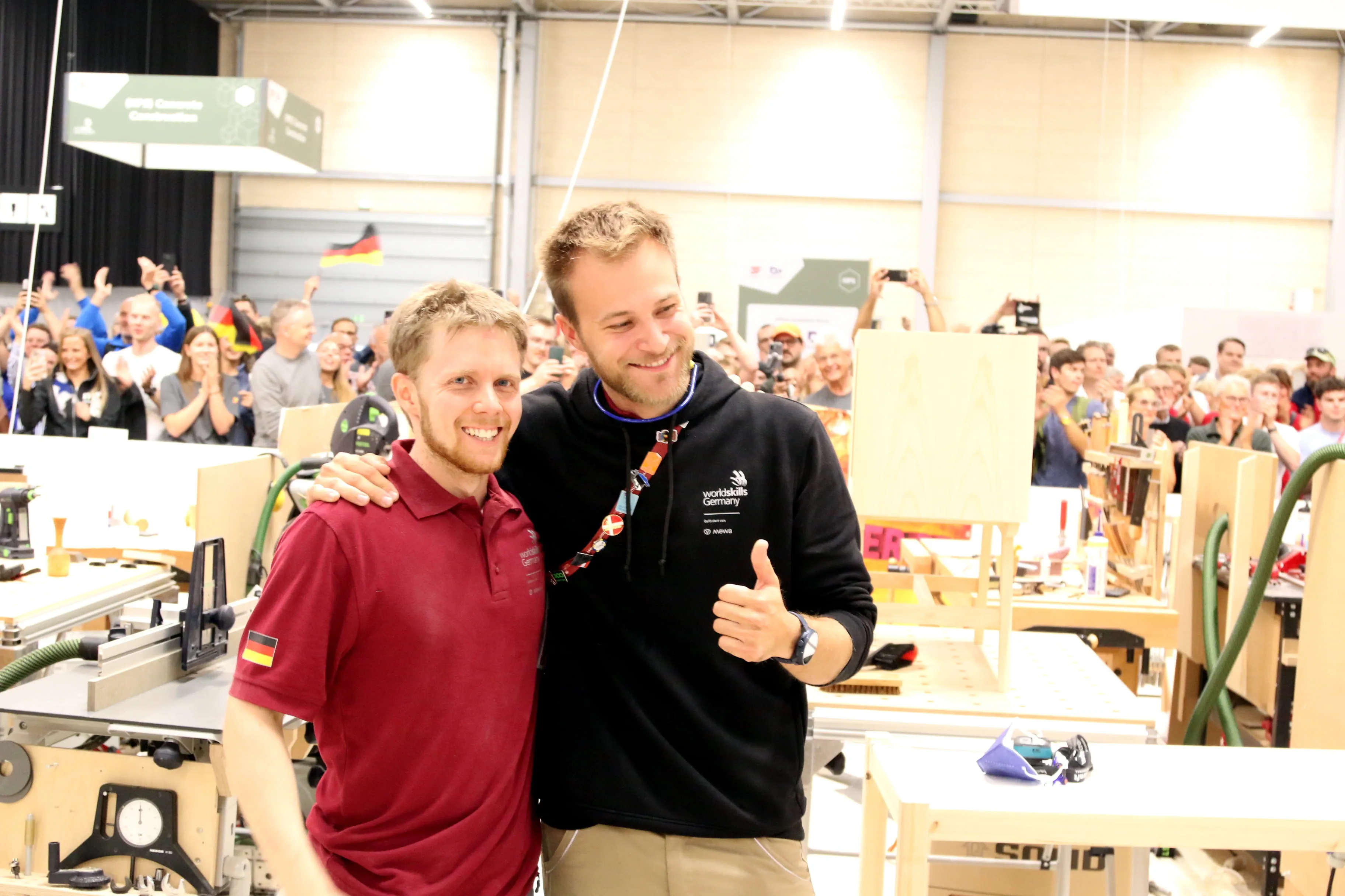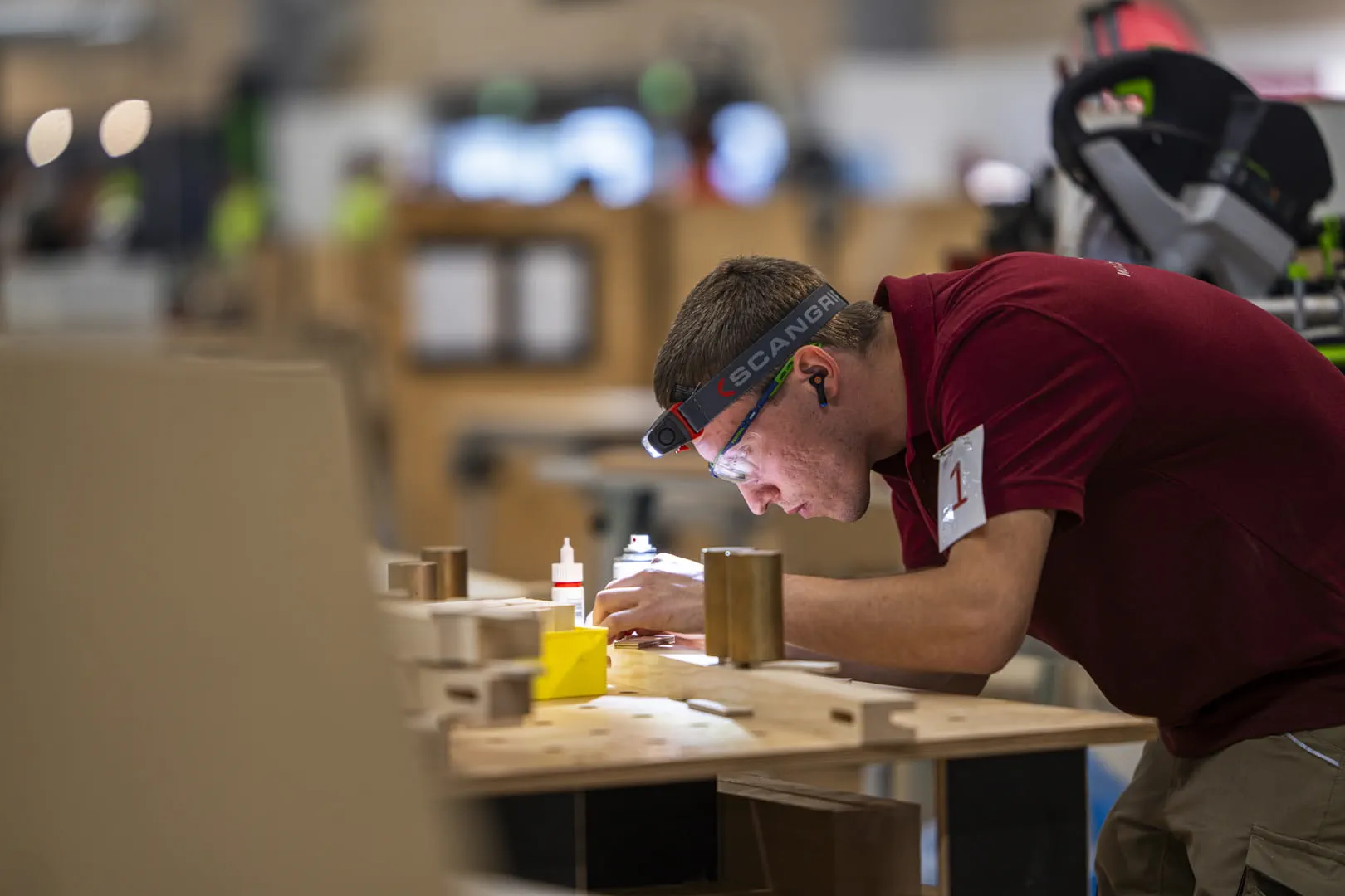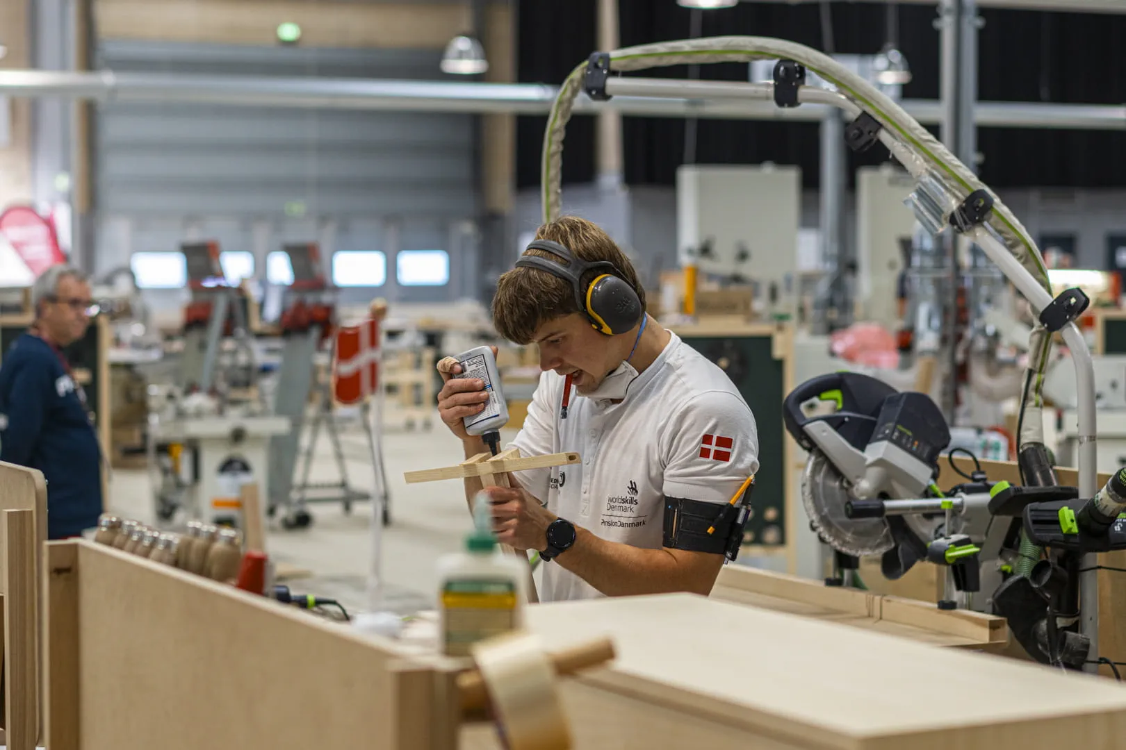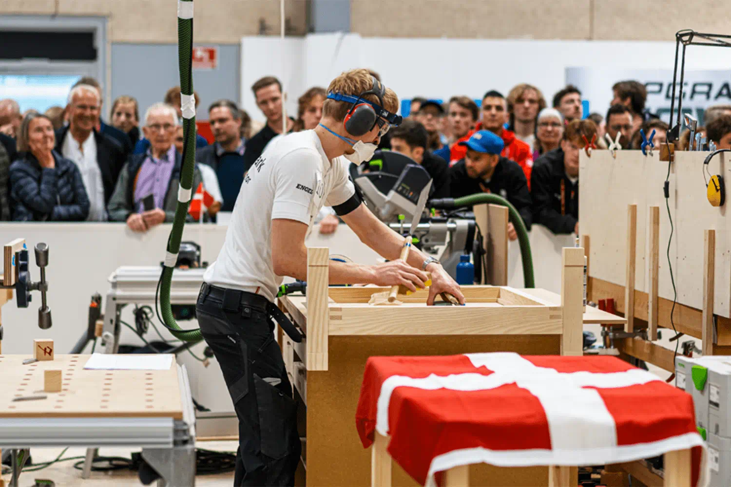 Cuando se abren las puertas de las salas de competición en Herning, Dinamarca, en EuroSkills, te sumerges inmediatamente en un mundo diferente: La adrenalina está en el aire, las caras de los competidores muestran la máxima concentración. Todo ello acompañado por el rítmico zumbido de las máquinas y el olor a madera y serrín. La artesanía y el talento se condensan en unos pocos metros, en los que los participantes trabajan con el sudor de su frente para completar proyectos muy exigentes en un tiempo determinado. Lo único que tienen a su lado son sus herramientas eléctricas. Ayudantes indispensables en el camino hacia el podio de los ganadores.