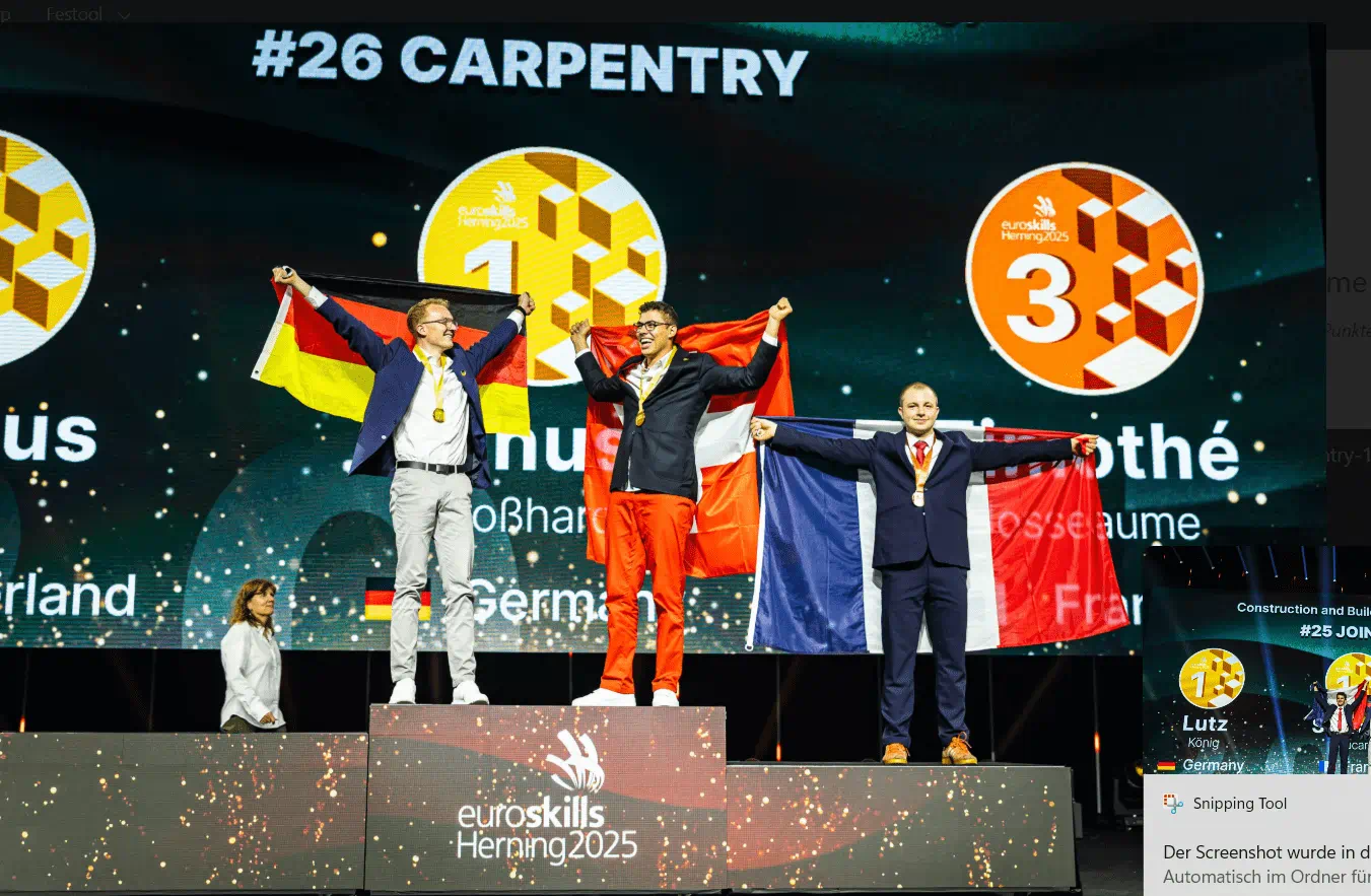 Por la calidad, por la artesanía, por el futuro: Festool fue un orgulloso patrocinador premium en cinco grupos profesionales. Los más de 103.000 visitantes, los 600 participantes de 33 países y los 38 grupos profesionales: todo ello quedó demostrado: La artesanía es ilimitada, viva y llena de perspectivas. Estamos orgullosos de haber formado parte de esta impresionante competición con todos sus jóvenes talentos y ya estamos deseando que llegue la próxima edición de EuroSkills 2027 en Düsseldorf y Luxemburgo. Una vez más, promover a los jóvenes talentos y contribuir al futuro de los oficios cualificados con nuestras herramientas fue un asunto muy cercano a nuestros corazones.